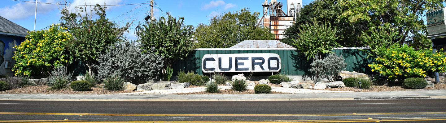 A good thing about having lots of electrical issues is that it gave us a project for Saturday and got us out of the area so Lee’s dad could rest, which he needs a lot of right now (bonus—it got me out of the heat). We set off for Cuero in search of RV batteries and the components for a giant extension cord. Cuero is really a pretty little down of 6,000 or so people. There are so many really nicely maintained old houses to look at, and the downtown area is also chock full of well-maintained old buildings and civic structures. It’s the county seat, so there is a really attractive courthouse and an old jail that looks like a castle (no, that is in Luling, I realized later). [Cuero once boasted the largest population of millionaires per capita in the country.]